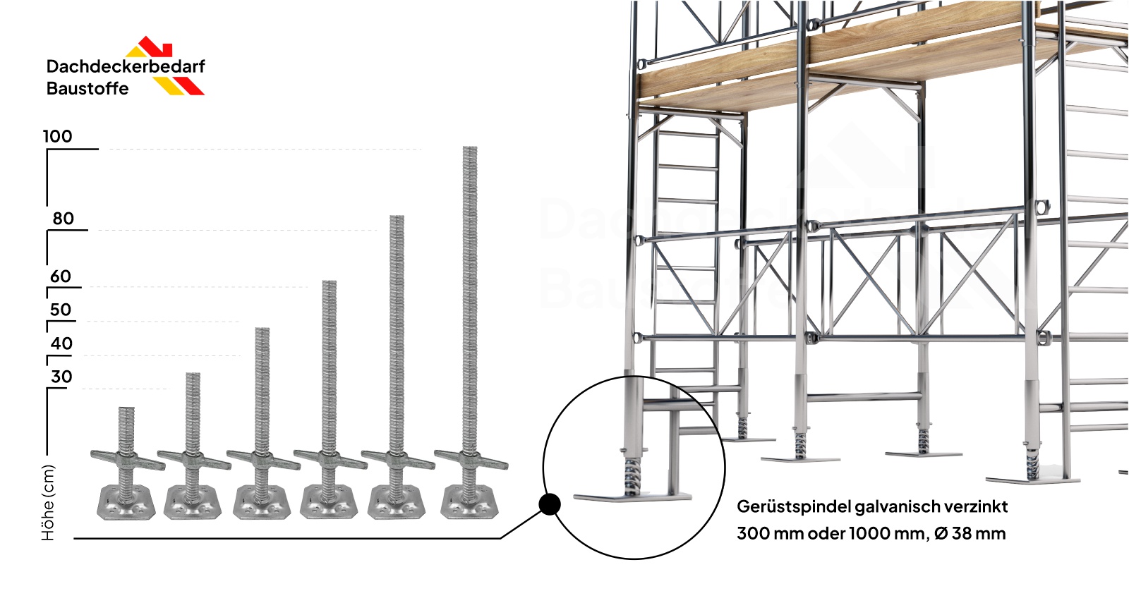 Gerüstspindel galvanisch verzinkt 300 mm oder 1000 mm, Ø 38 mm