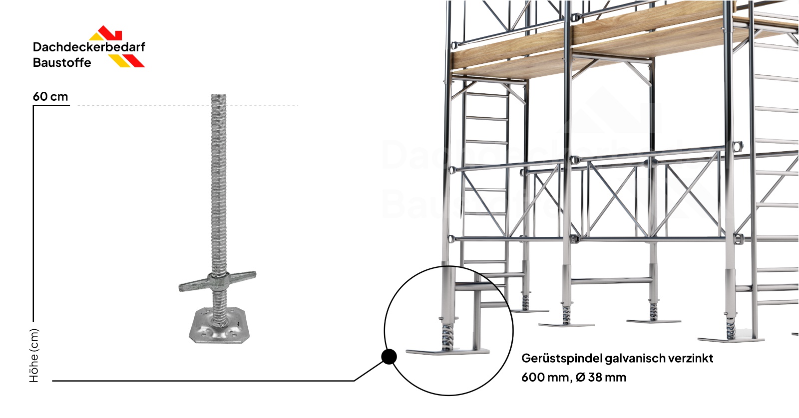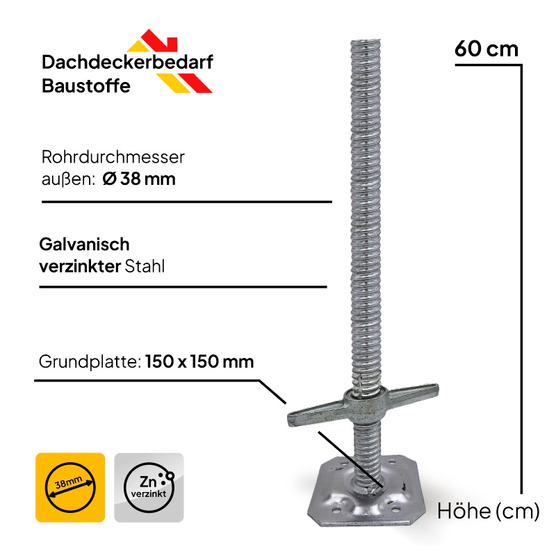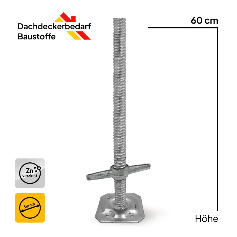 Gerüstspindel galvanisch verzinkt 600 mm, Ø 38 mm