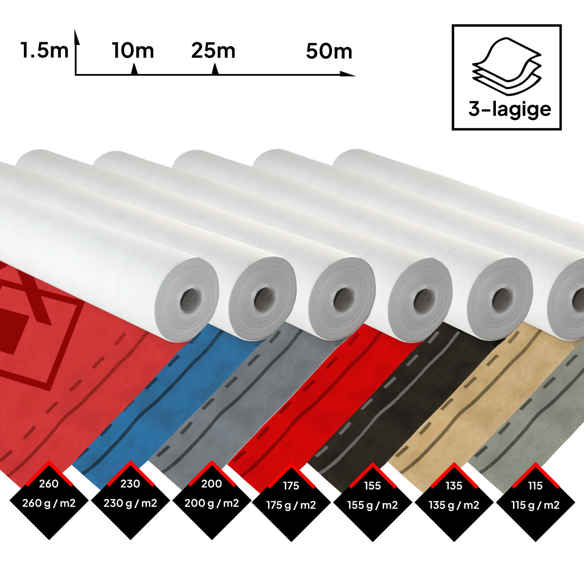 - Flächengewicht: 115 - 260 g/m.²