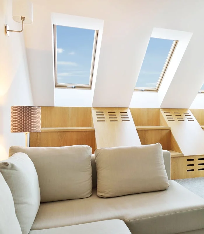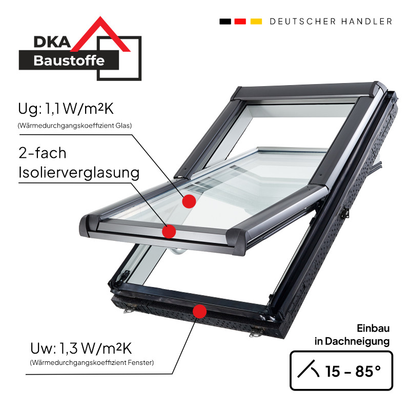 - Dachfenster aus hochwertigem Kunststoff (PVC-4-Kammer-Profil), Verstärkung aus verzinkten, kalt gewalzten Stahlprofilen