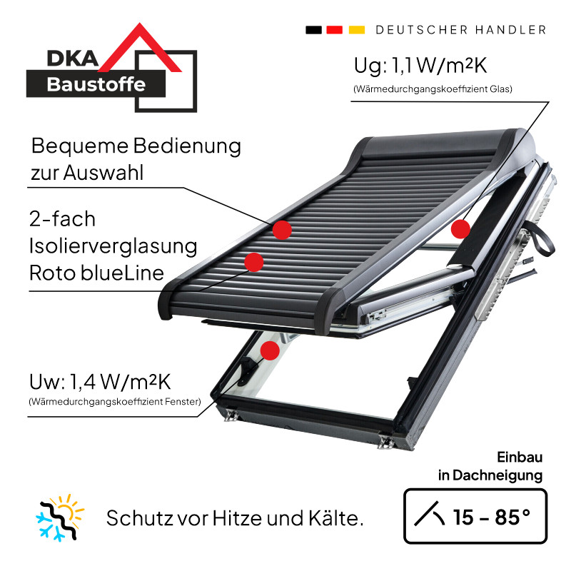 - hochwertige und energieeffiziente 2-fach Isolierverglasung Roto blueLine, gehärtete Außenscheibe
