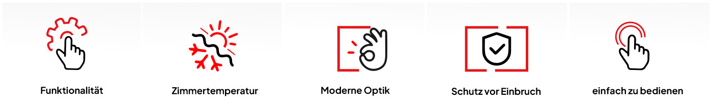 - Ansprechendes hochwertiges Design, geringe Aufbauhöhe durch flachen Rollladenkasten