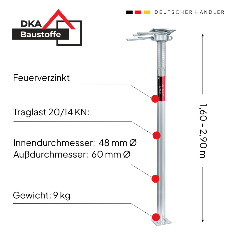 Bausprieß Baustütze Fensterstütze Deckenstütze Stütze 20KN Feuerverzinkt 160/290 cm