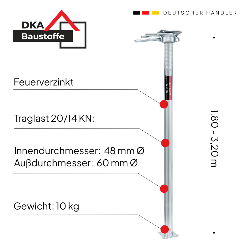 Bausprieß Baustütze Fensterstütze Deckenstütze Stütze 20KN Feuerverzinkt 180/320 cm
