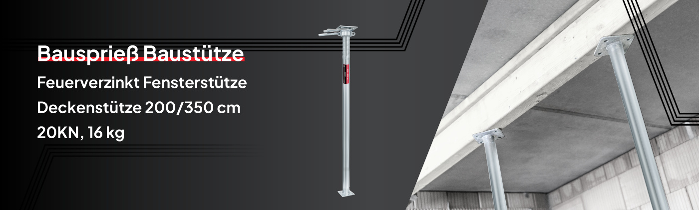 Stufenlos höhenverstellbarer Bausprieß für unterschiedlichste Arbeiten. Durch senkrechte und waagrechte Verwendungsmöglichkeit sind Sie immer flexibel und vorbereitet.