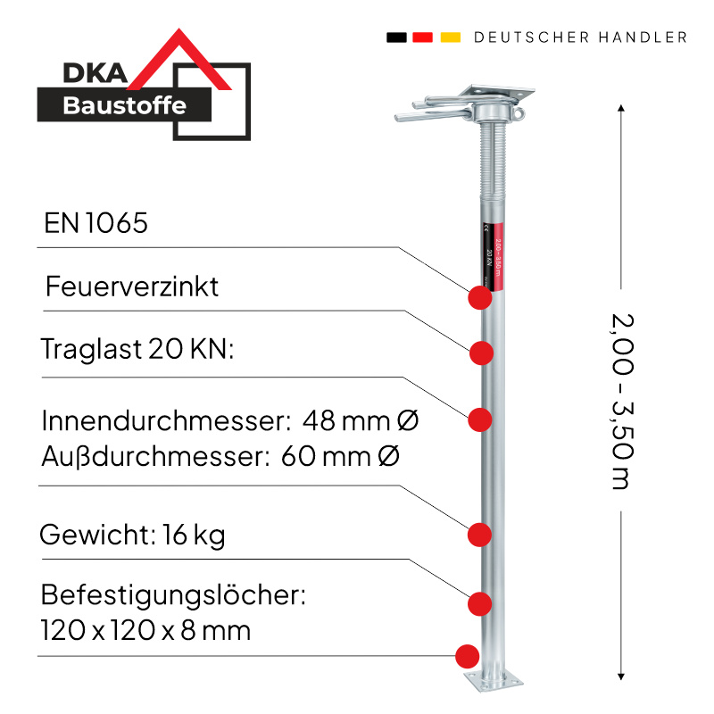 Bausprieß Baustütze Fensterstütze Deckenstütze Stütze 20KN Feuerverzinkt 200/350 cm