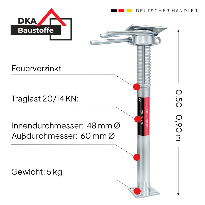 Bausprieß Baustütze Fensterstütze Deckenstütze Stütze 20KN Feuerverzinkt, 50/90 cm